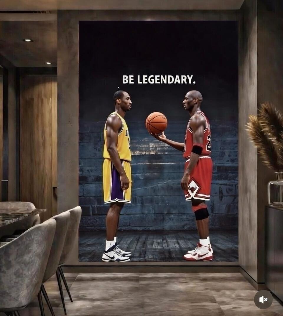 Honor the greatest to ever play the game. This breathtaking "Be Legendary" wall art captures the soul of basketball history, featuring a rare, symbolic meeting between Kobe Bryant and Michael Jordan. Set against an industrial, high-contrast backdrop, the piece depicts the moment the torch of greatness is passed from one legend to the next.