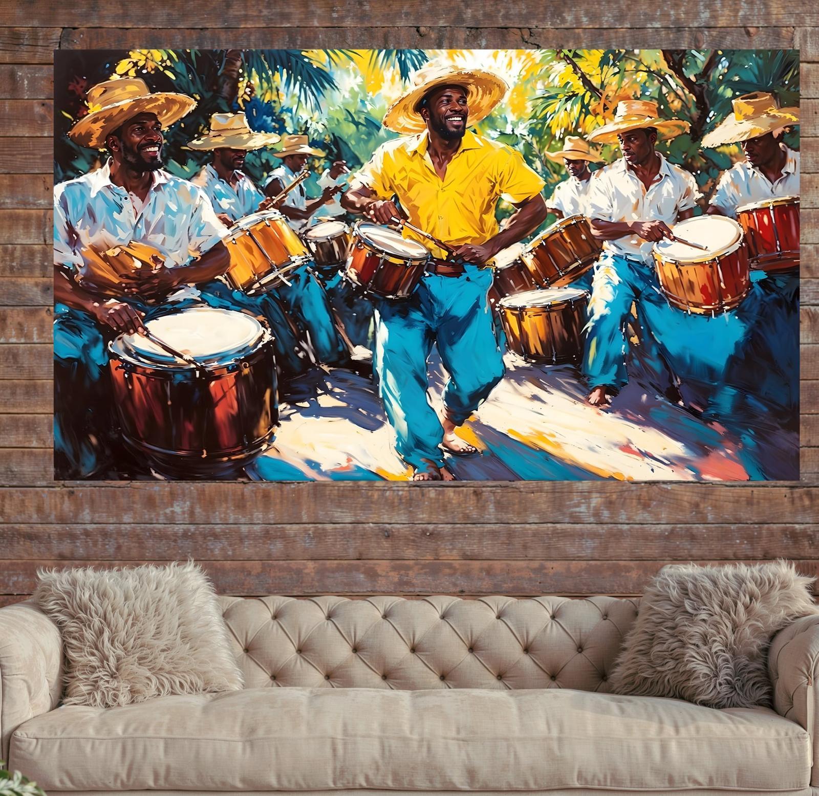 Bring the pulse of the island home. This vibrant masterpiece captures the raw energy and collective soul of a sun-drenched percussion circle. With every impressionistic stroke, you can almost hear the rhythmic slap of the congas and feel the warmth of the tropical sun. It’s more than art it’s an invitation to dance.