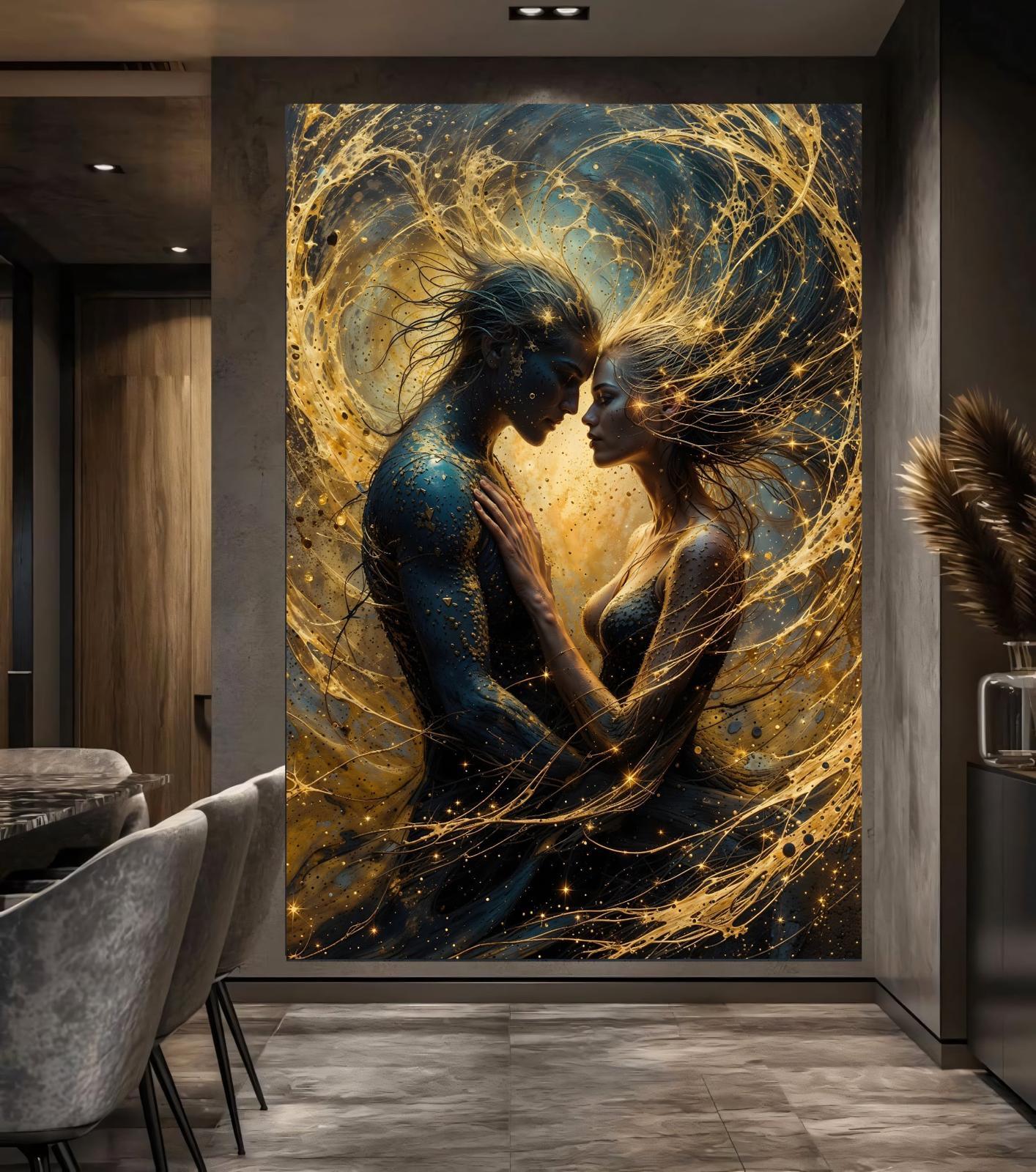 Celebrate a connection that transcends the physical. This breathtaking piece captures two souls merging into one, draped in starlight and celestial energy. Whether it’s for a Twin Flame or a lifelong soulmate, this artwork serves as a luminous reminder that some bonds are forged in the heavens.
